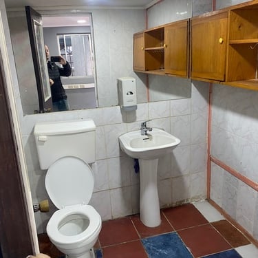 Recepción , oficina y baño, además de un estacionamiento para 2 autos.